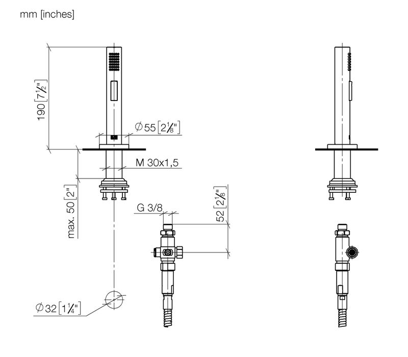 - Bohrungsdurchmesser Spülbrause 32 mm