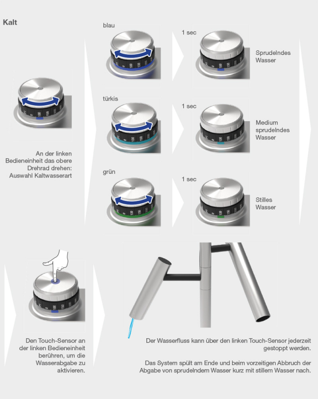 - Click and Touch: Auswahl vordefinierter Wasserarten und Volumen in ml dank Skalierungsrad und intuitiver Touch-Bedienung