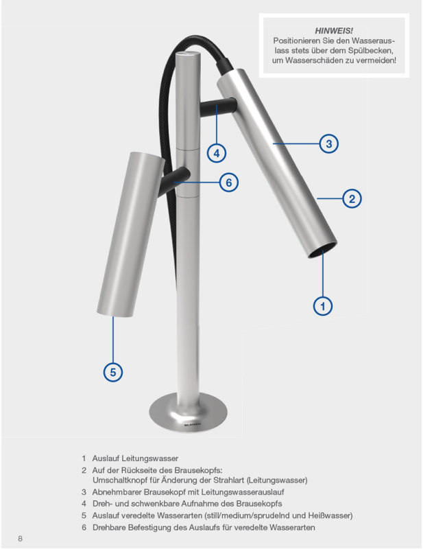 - Ersatzfilter und Kartuschen, sowie sonstiges Verbrauchsmaterial kann ausschließlich direkt über den Blanco Online Shop bezogen werden