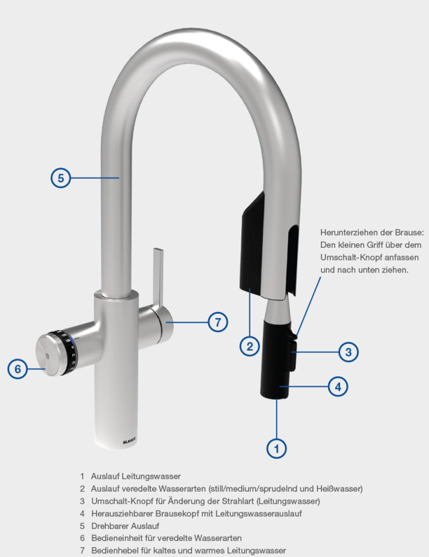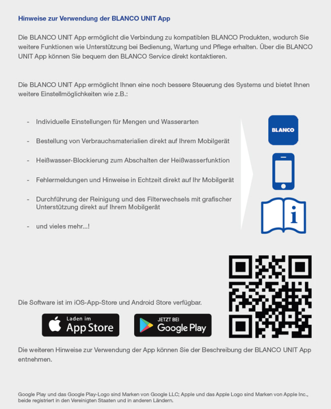 - Ersatzfilter und Kartuschen, sowie sonstiges Verbrauchsmaterial kann ausschließlich direkt über den Blanco Online Shop bezogen werden