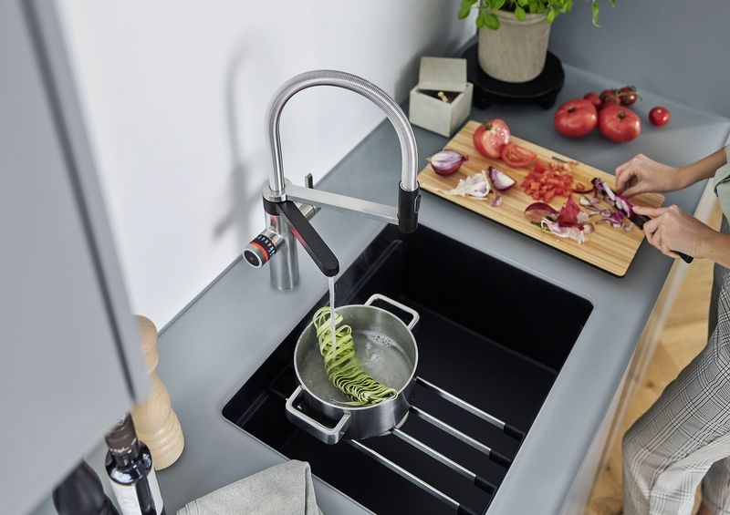 - 4-in-1 Semi-Profi -Armatur: Kaltes, warmes, sowie gefiltertes kaltes und gefiltertes kochend heißes Wasser