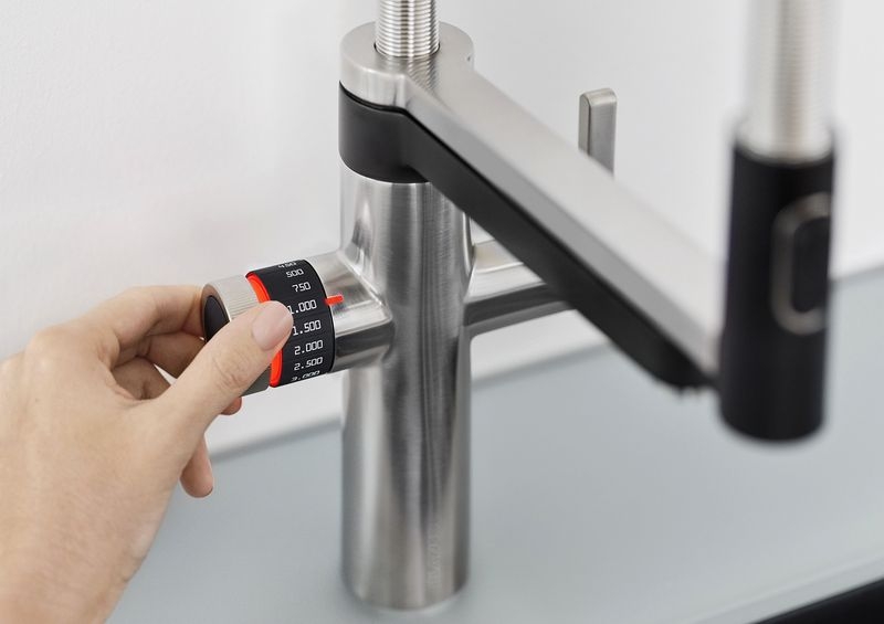 - Click & Touch: Einstellung der gefilterten Wassermenge dank präzisem Drehrad und intuitive Touch-Bedienung für bedarfsgerechten Wasserverbrauch