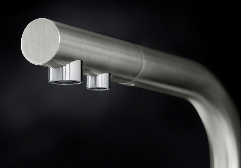 - Integrierter Auslauf für beide Wasserqualitäten mit speziellen Strahlreglern