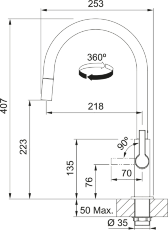 - Ø Armaturenbohrung 35 mm