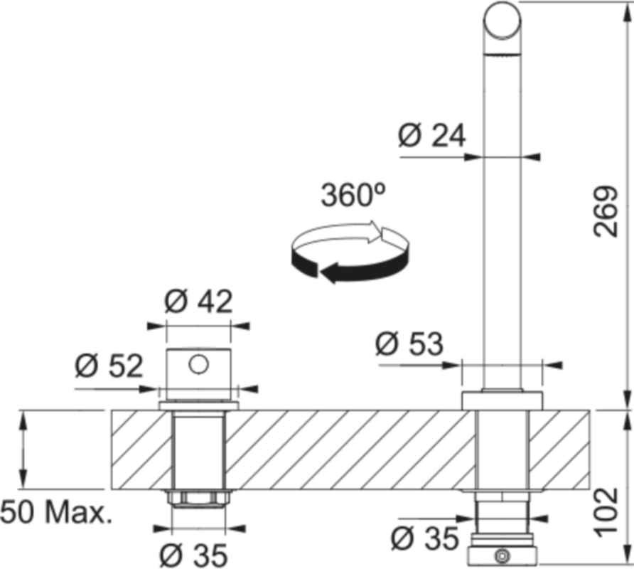 - Ø Armaturenbohrung 2 x 35 mm