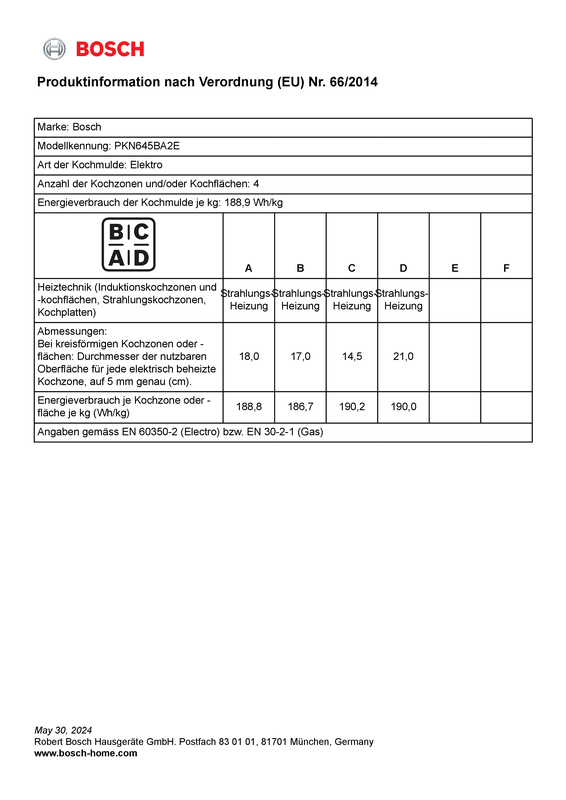 Produktbezeichnung/-familie: Kochstelle Glaskeramik