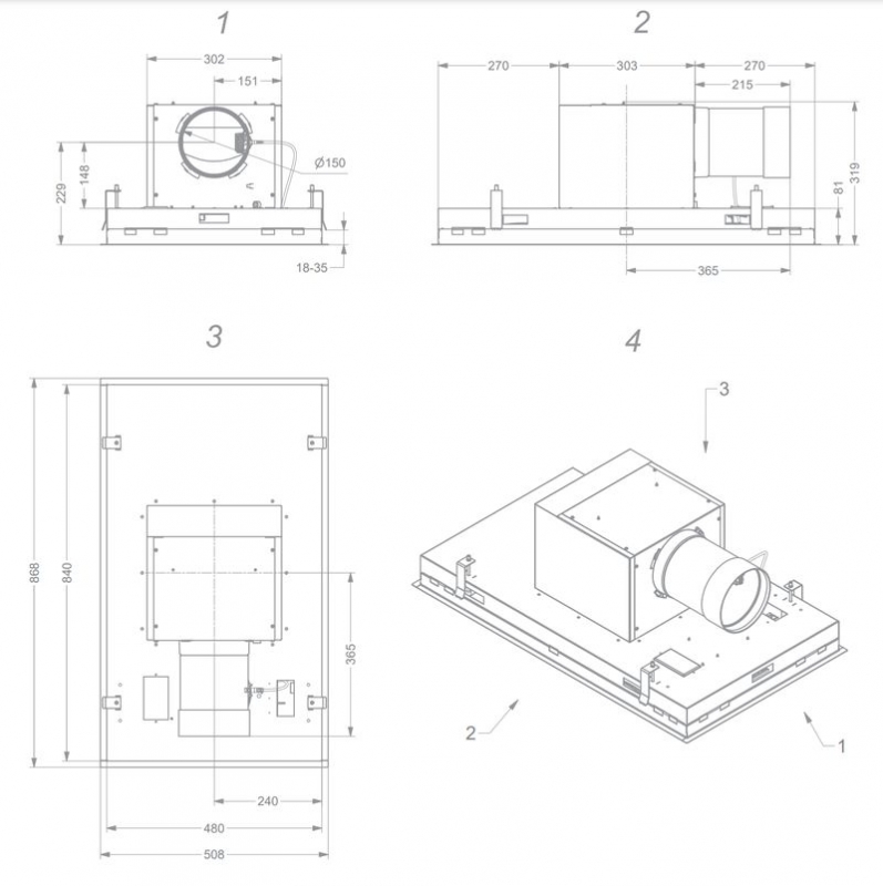 - Abluftstutzen Oben / rechts / links / hinten / vorne