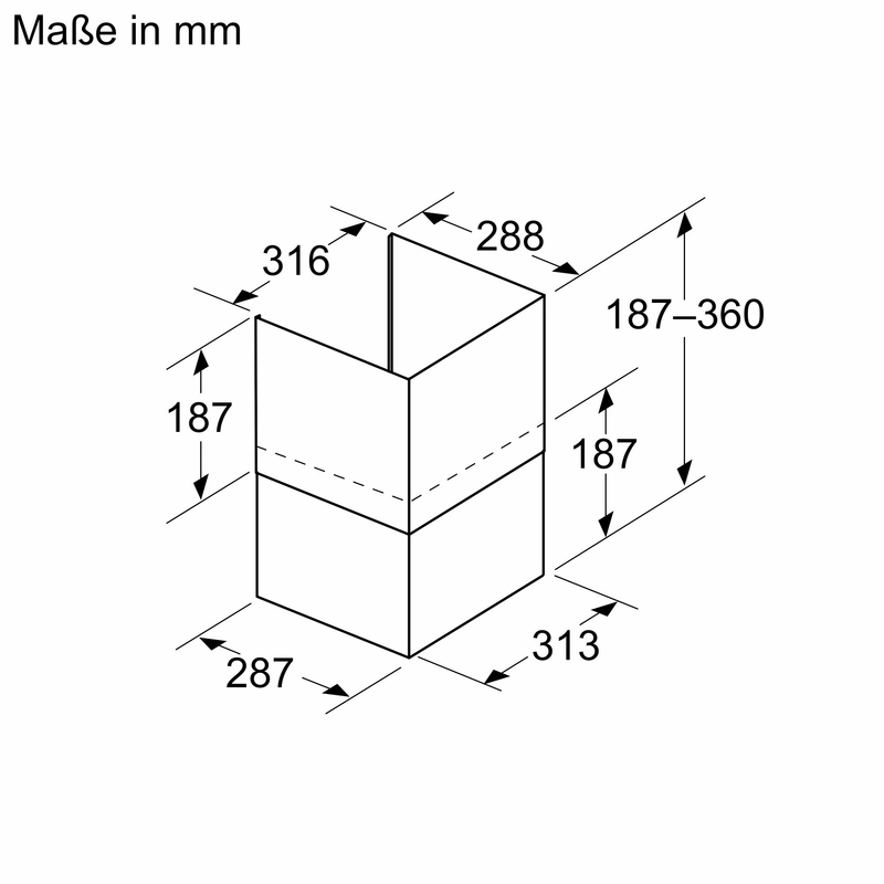 Kaminverlängerung 187-360 mm für die integrierte Designhaube.