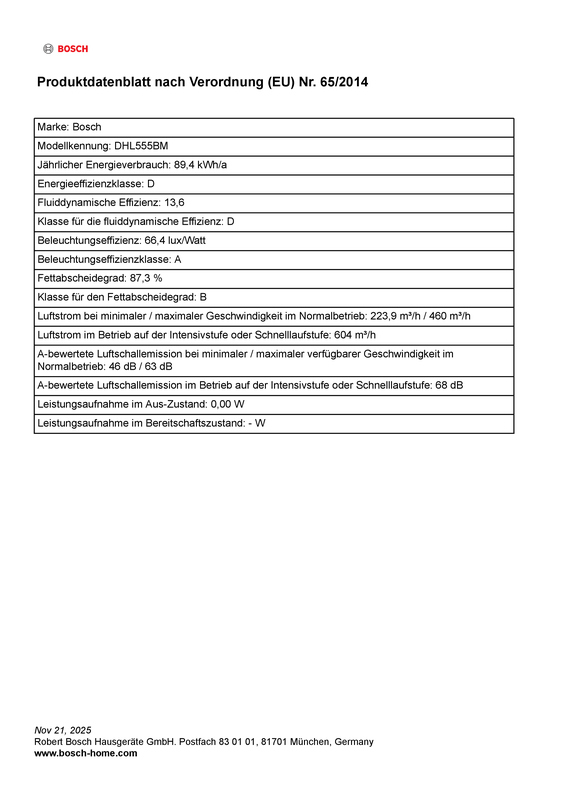 - Lüfterleistung bei höchster Normalstufe Abluft: 460 m³/h