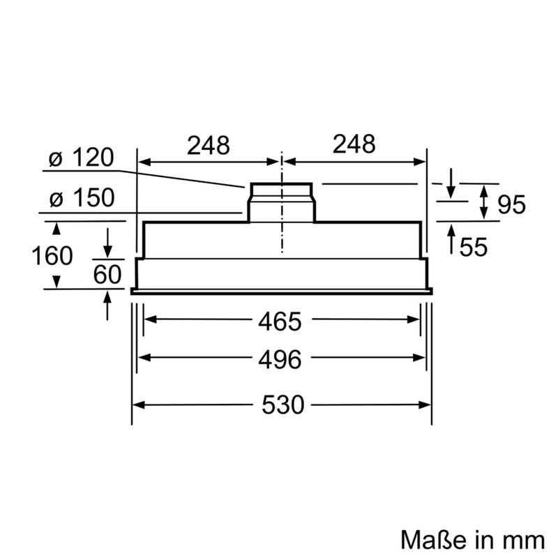 - Durchmesser des Abluftstutzens: 120 / 150 mm