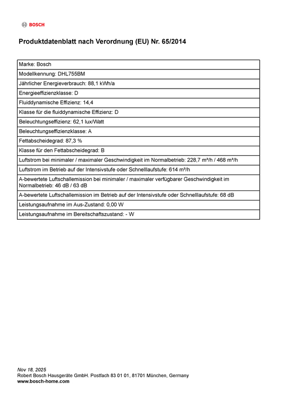 - Fettfilter-Effizienzklasse: B*