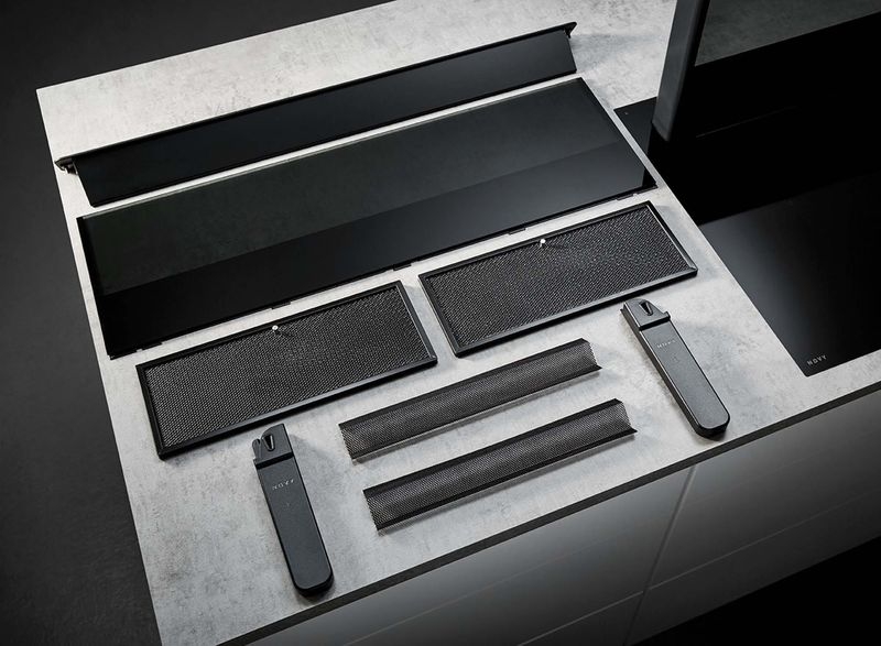 - Semi-transparanter Lüftungsschirm verschwindet unsichtbar im Kochfeld