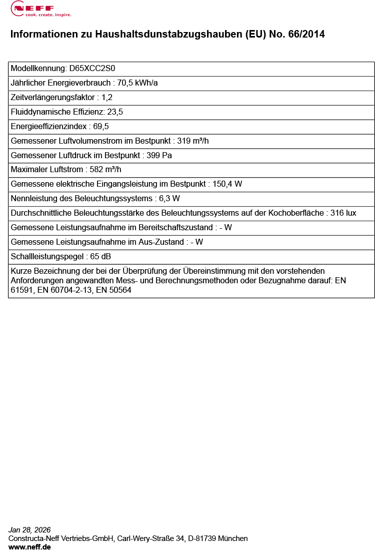 - Leistungsstufe 3: Lüfterleistung 583 m3/h; Geräuschwert 65 dB (A) re1pW