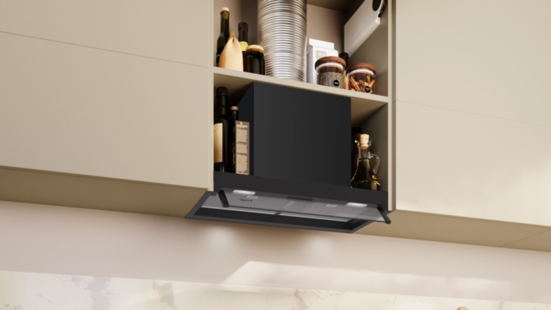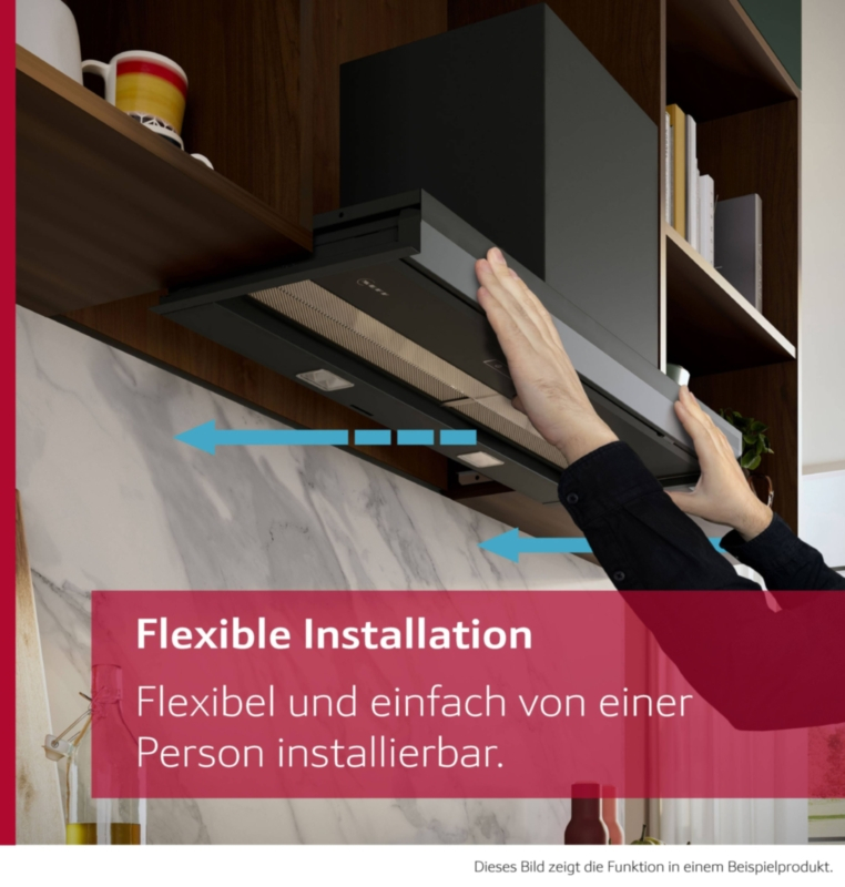 - Nahtlose Integration: Nahezu unsichtbar in einem Oberschrank dank flächenbündigem Einbau.