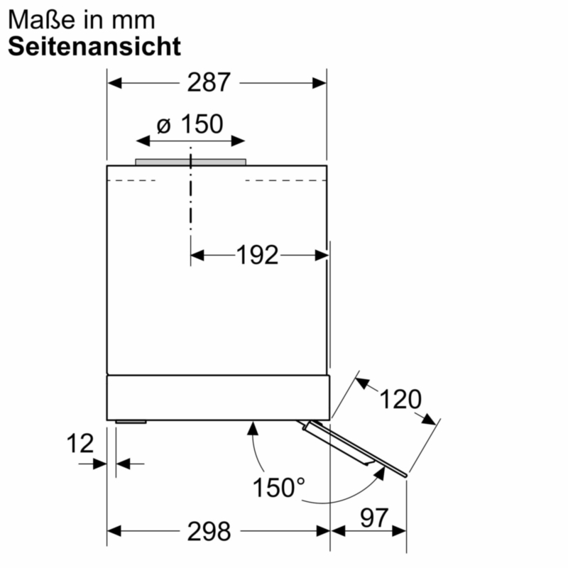 - Abluftausgang: Ø 150 mm