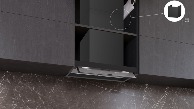 - Für den Einbau in höhere Oberschränke sind Kaminverlängerungen als optionales Zubehör erhältlich.