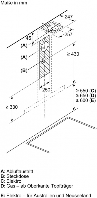 - Mindestabstand zur Kochstelle Elektro: 550 mm