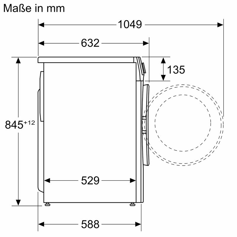 - Abmessungen des Gerätes: 848 x 598 x 588 mm