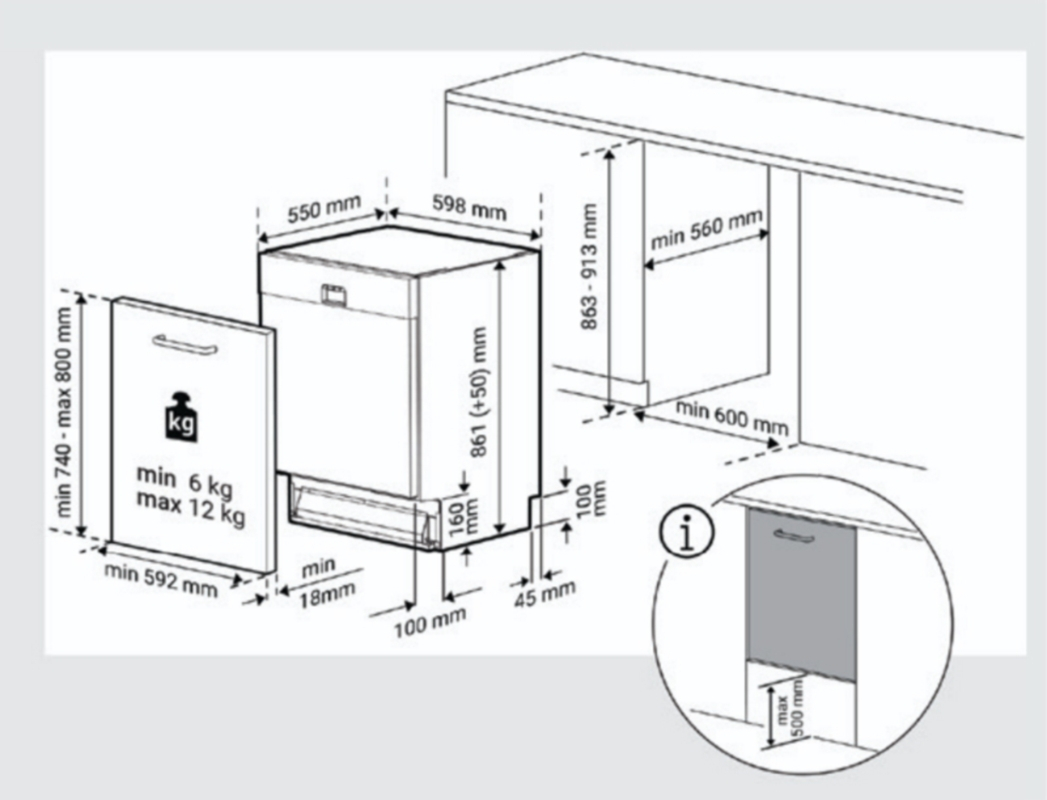 - Gerätemaße (HxTxB): 861x550x598 mm