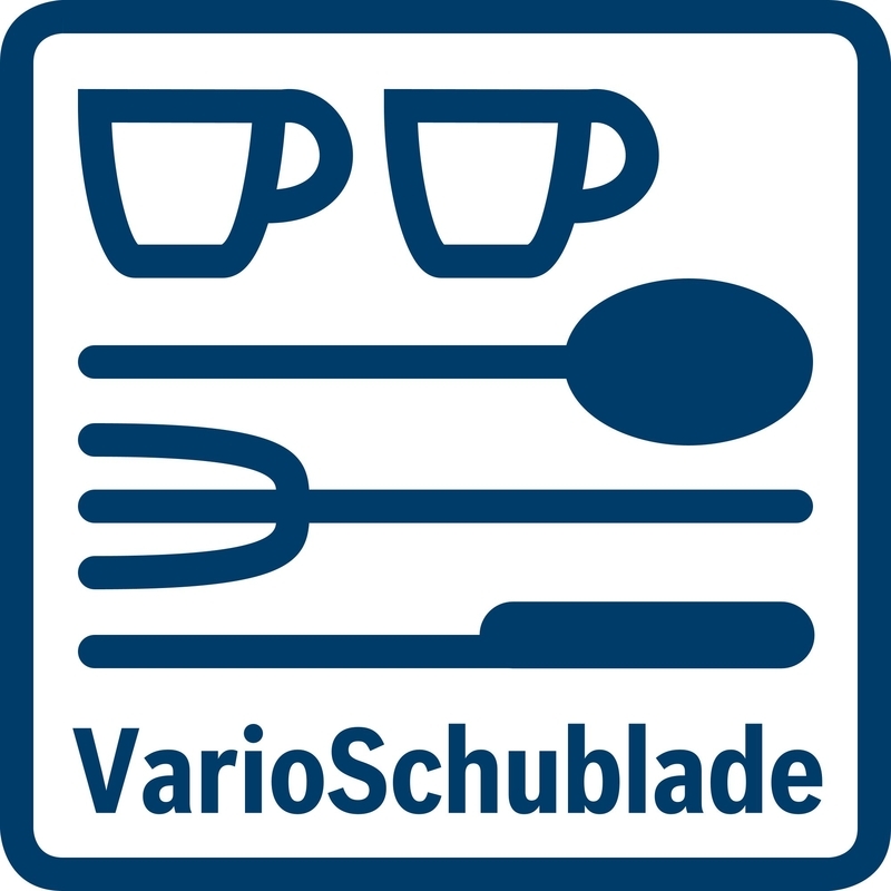 - Die VarioSchublade bietet mit extra Aussparungen Platz für größere Besteckutensilien oder kleinere Geschirrteile.