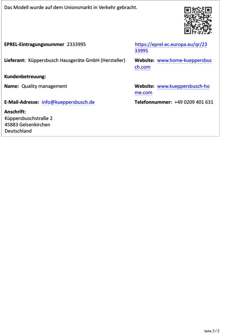 Artikelbezeichnung: Küppersbusch Hausgeräte GmbH
