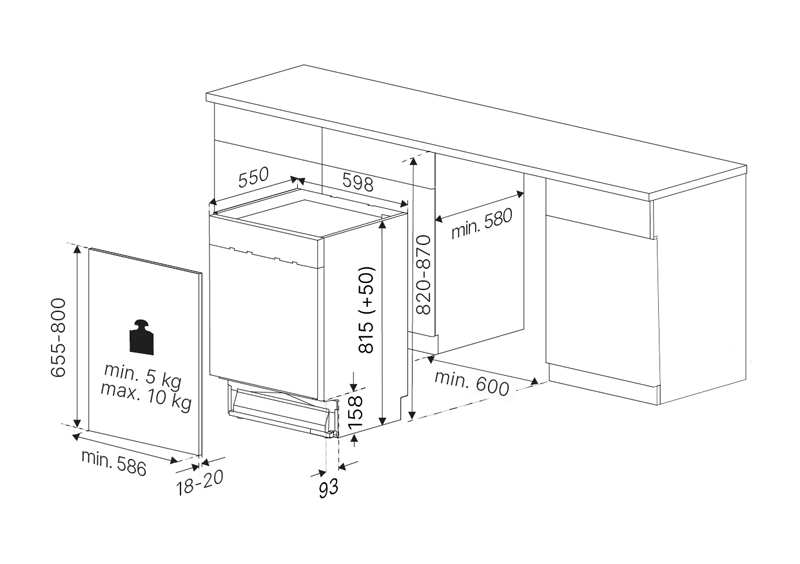 - Gerätemaße B x H x T ca. 598 x 815-865 x 550 mm