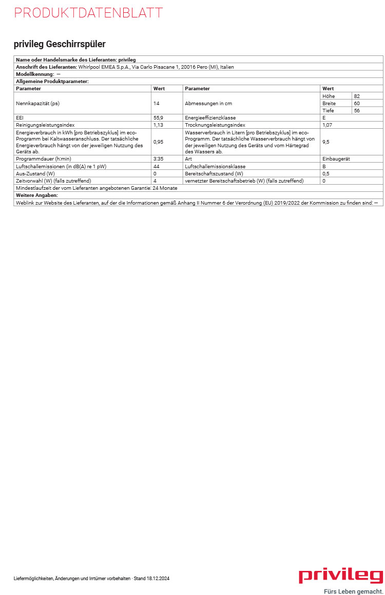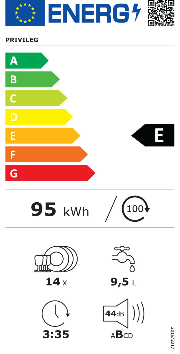 - Energieeffizienzklasse E, Reinigungsleistungsindex 1,13, Trocknungsleistungsindex 1,07