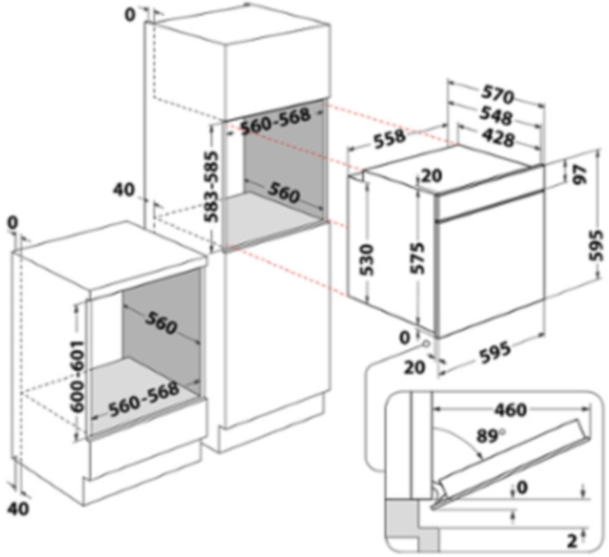 - Nischenmaße (HxBxT): 600x560x555 mm