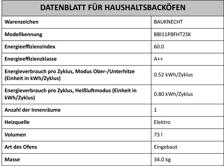 - Energieverbrauch nach DIN 0.8 kWh Umluft