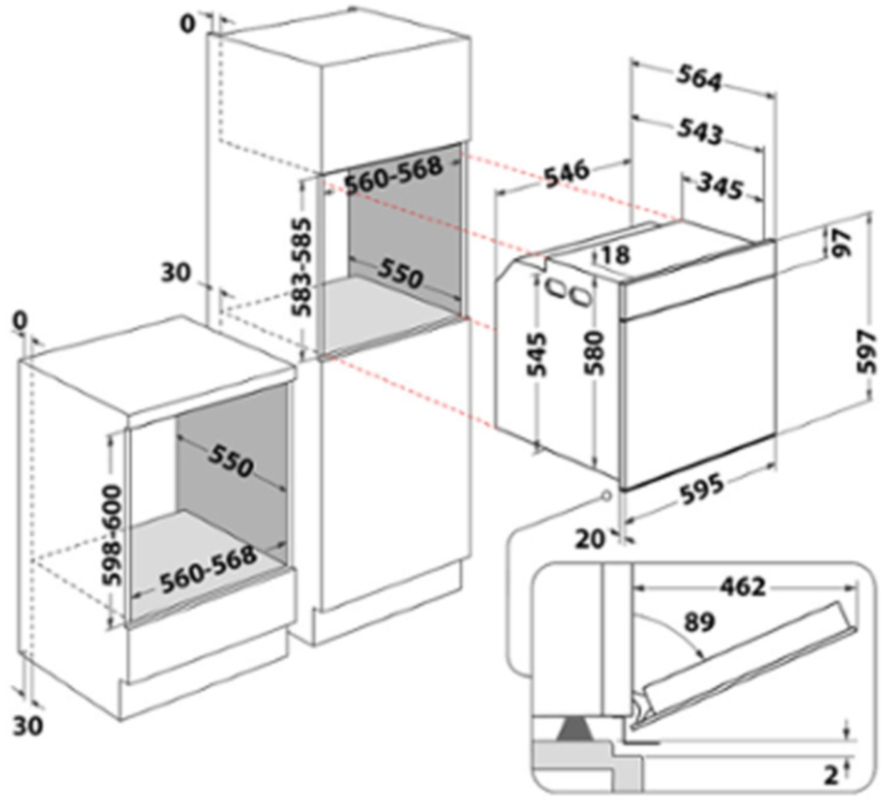 - Nischenmaße (HxBxT): 585x560x550 mm