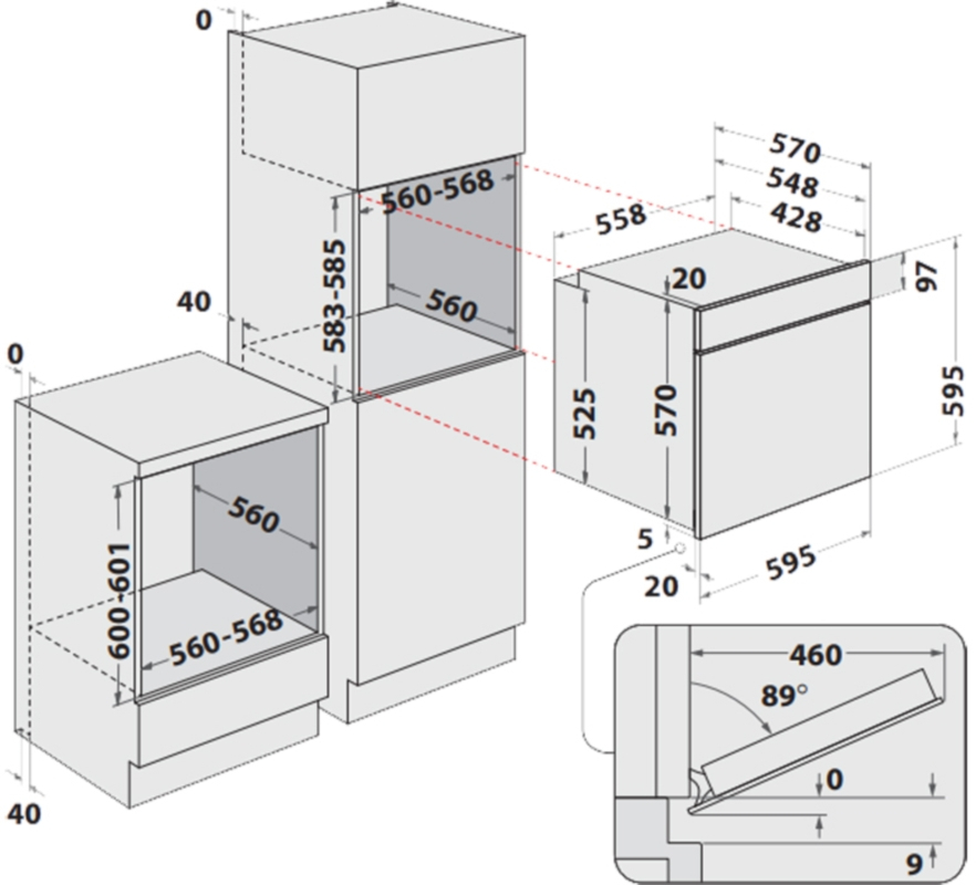 - Nischenmaße (HxBxT): 600x560x560 mm
