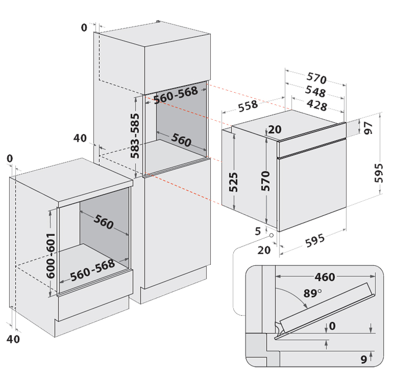 - Nischenmaße (HxBxT): 600x560x560 mm
