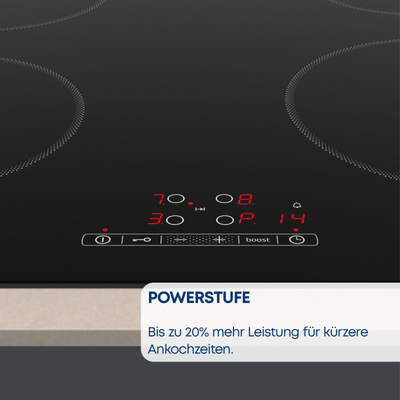 Powerstufe: Bis zu 20% mehr Leistung dank Powerstufe für alle 4 Induktions-Kochzonen.