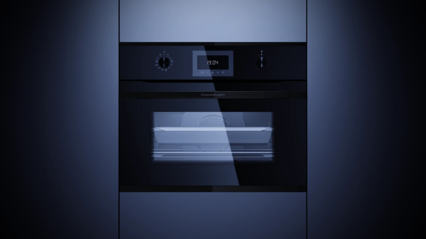 Ein Ringheizkörper, der in der Backofenrückwand platziert ist, umschließt das Lüfterrad und gewährleistet das Garen auf bis zu vier Ebenen ohne das Geschmack oder Geruch von einem Gargut zum anderen übertragen wird.