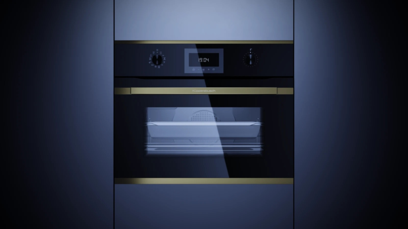 Ein Ringheizkörper, der in der Backofenrückwand platziert ist, umschließt das Lüfterrad und gewährleistet das Garen auf bis zu vier Ebenen ohne das Geschmack oder Geruch von einem Gargut zum anderen übertragen wird.