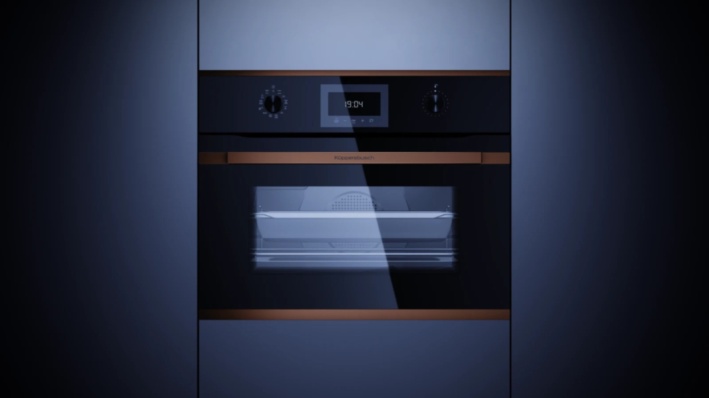 Ein Ringheizkörper, der in der Backofenrückwand platziert ist, umschließt das Lüfterrad und gewährleistet das Garen auf bis zu vier Ebenen ohne das Geschmack oder Geruch von einem Gargut zum anderen übertragen wird.