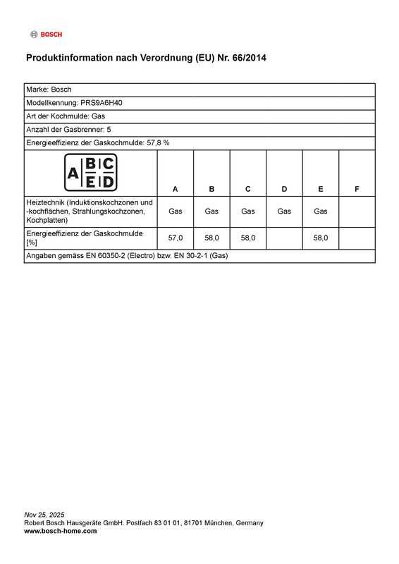 • Deutschland: Gaskochfelder mit einer Anschlussleistung von mehr als 11 kW müssen zusätzliche Anforderungen erfüllen, wie z. B. eine kontrollierte Raumlüftung bei Dunstabzügen im Abluftbetrieb. Diese müssen möglicherweise mit dem Insallateur besprochen werden.