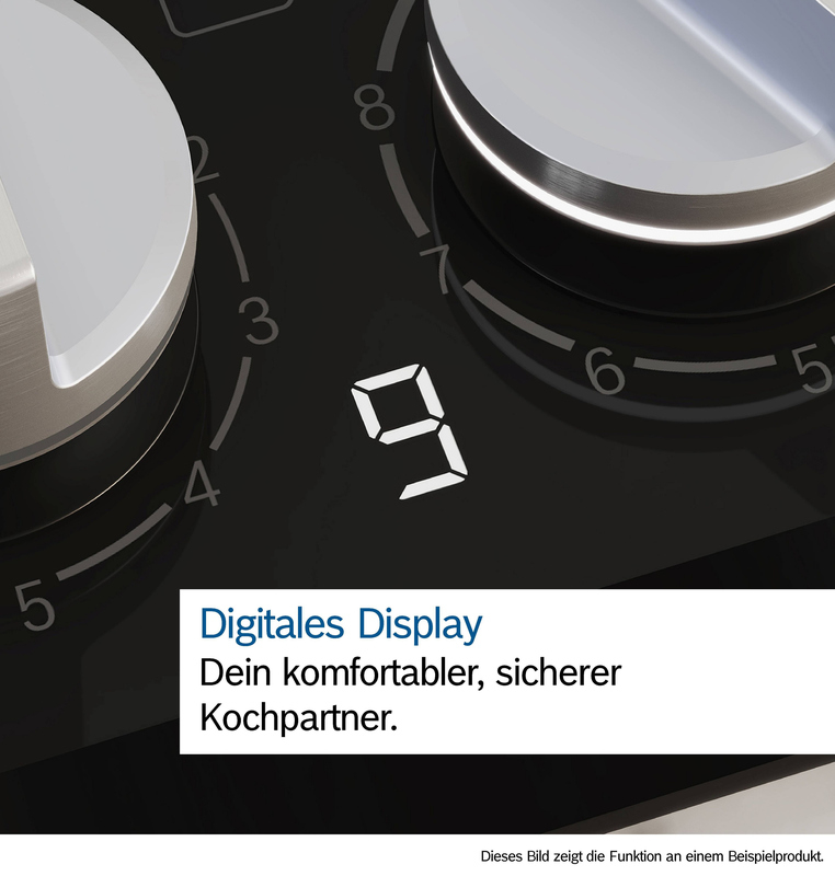 • TopControl-Digitalanzeige: zeigt die gewählte Leistungsstufe und Restwärme an