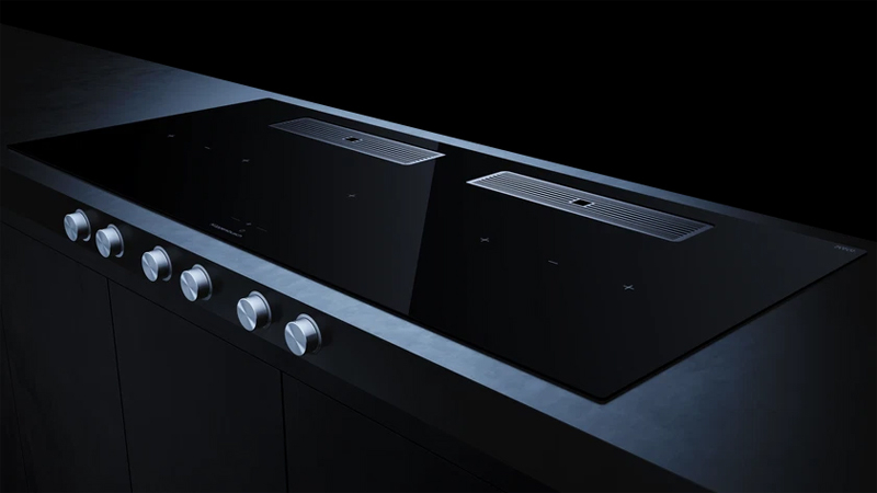 Bei den Flächeninduktionskochfeldern ermöglicht die Brückenfunktion das Zusammenschalten von 2 oder 4 Kochzonen.
