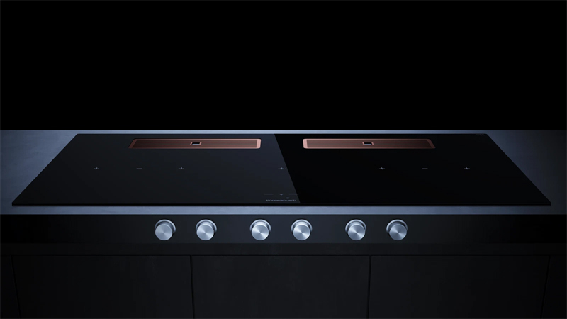 Bei den Flächeninduktionskochfeldern ermöglicht die Brückenfunktion das Zusammenschalten von 2 oder 4 Kochzonen.