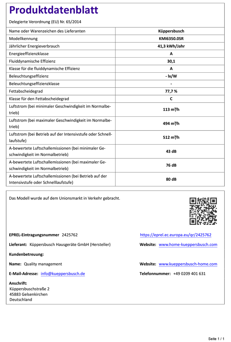 • Austausch gegen einen gleichwertigen oder neuen Artikel Küppersbusch KMI 6350.0 (ggf. auch ein Nachfolgemodell).