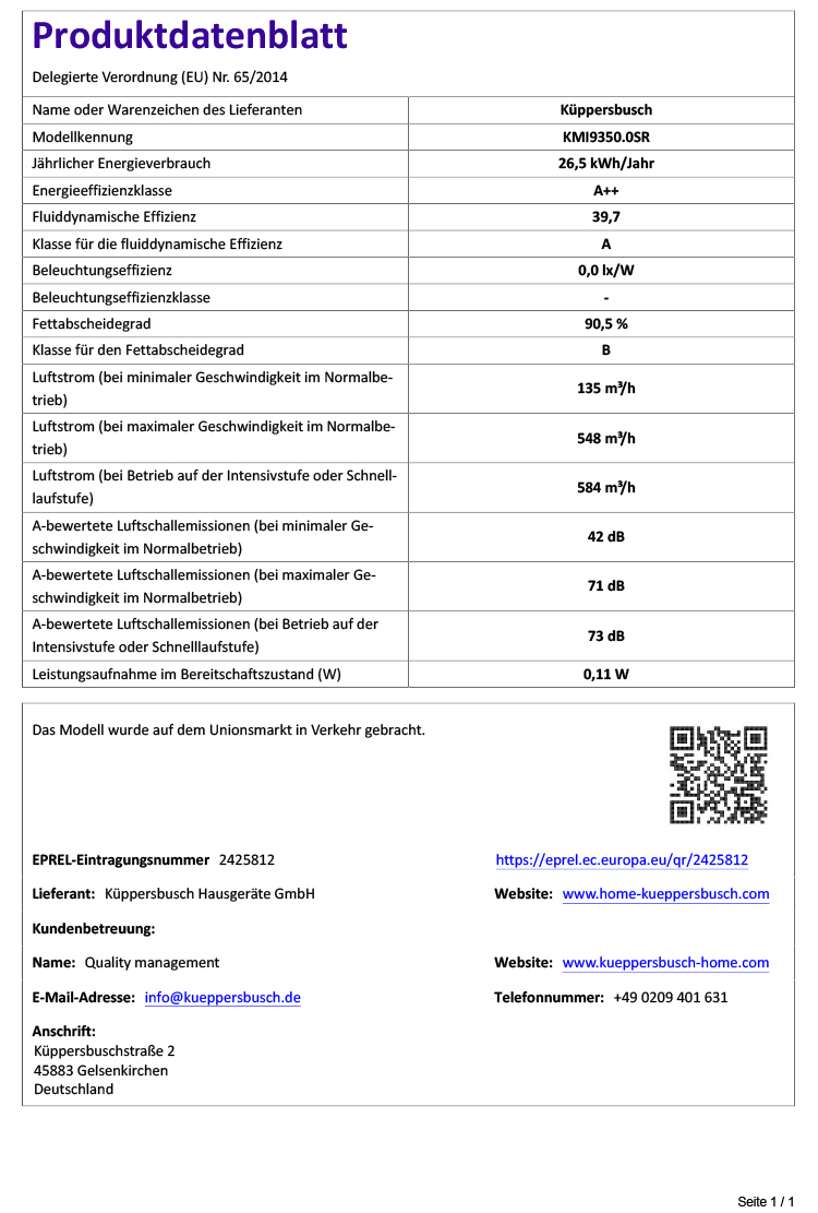 • Austausch gegen einen gleichwertigen oder neuen Artikel Küppersbusch KMI 9350.0 (ggf. auch ein Nachfolgemodell).