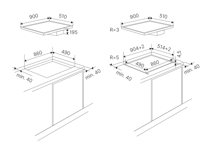 - Gerätemaße B x T x H 900 x 510 x 195 mm