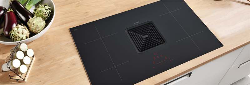 - Zentrale Bedienung von Kochfeld und Absaugung über beleuchtete Touchbedienung mit Slide-Funktion.