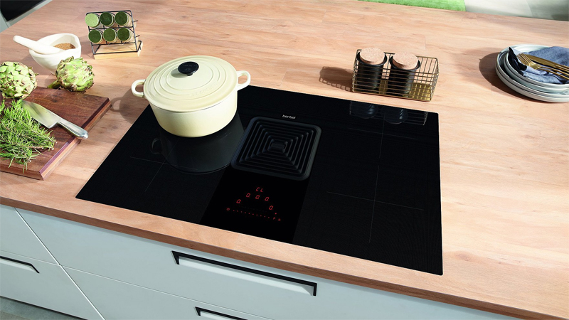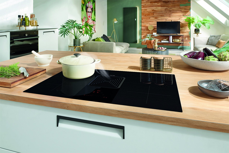 - 830 mm breites Induktionskochfeld für Schrankbreiten ab 900 mm, ab einer Arbeitsplattentiefe von 630 mm.