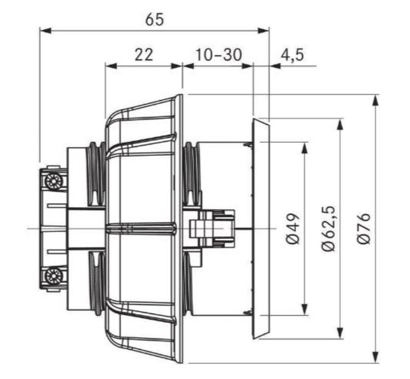 - Abmessungen Ø 76 x 60,5 mm