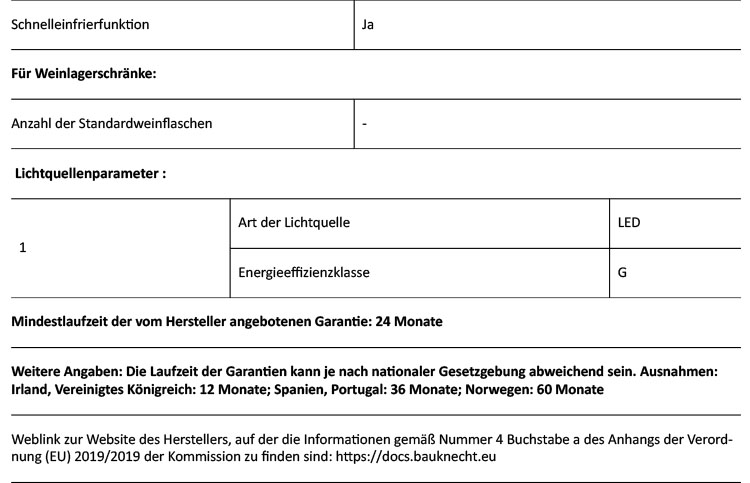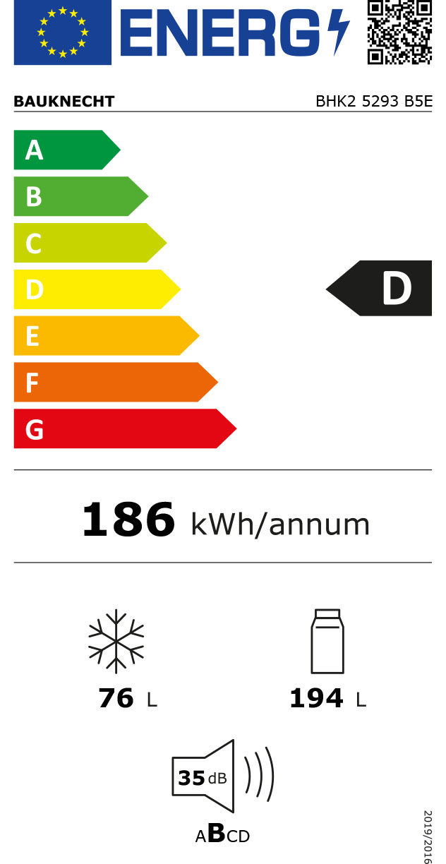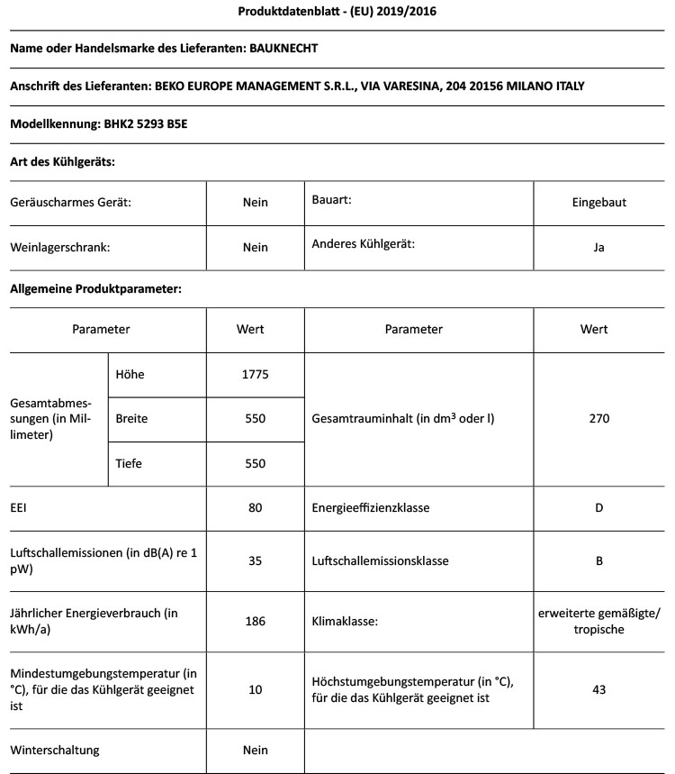 - Energieverbrauch: 186 kWh/Jahr