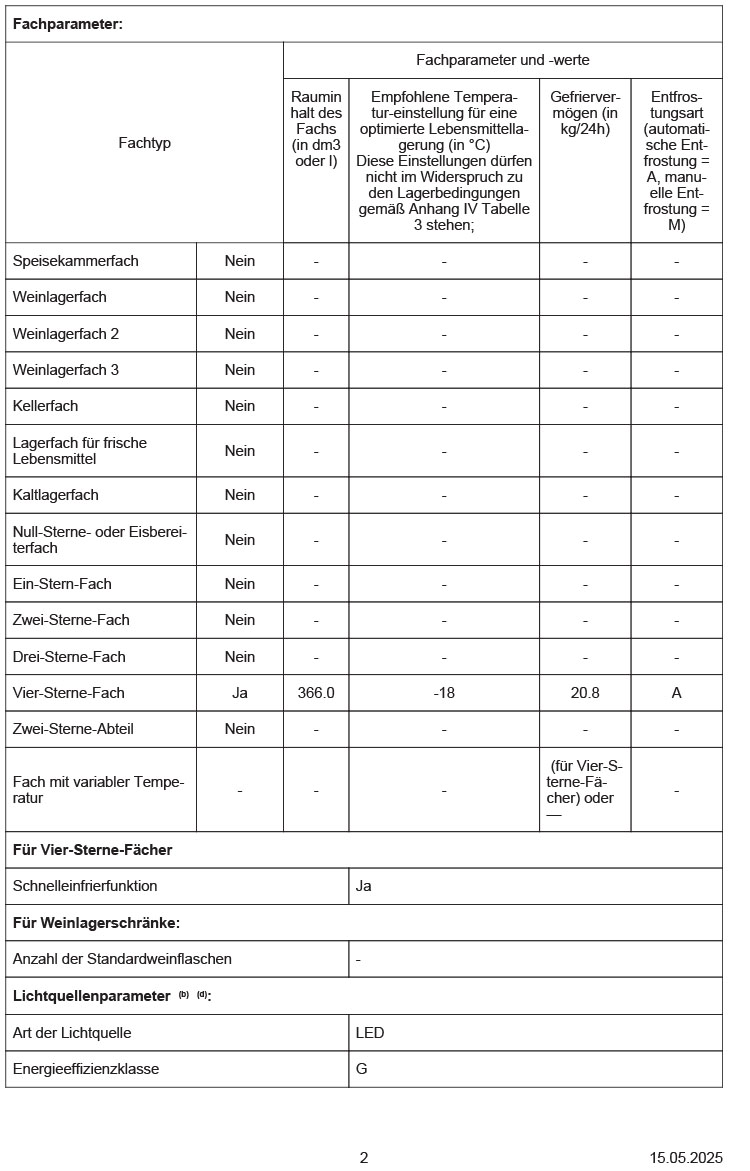 - Nutzinhalt Tiefkühlfächer: 366 l