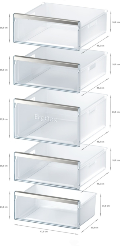 - 5transparente Gefriergut-Schubladen, davon 1 bigBox