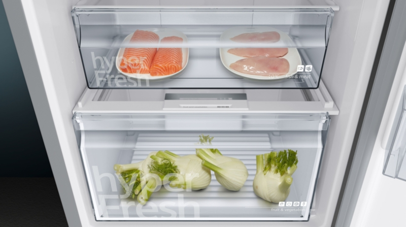 - easyAccess: alle Lebensmittel im Blick und in Reichweite durch verschiebbare Glasablagen.